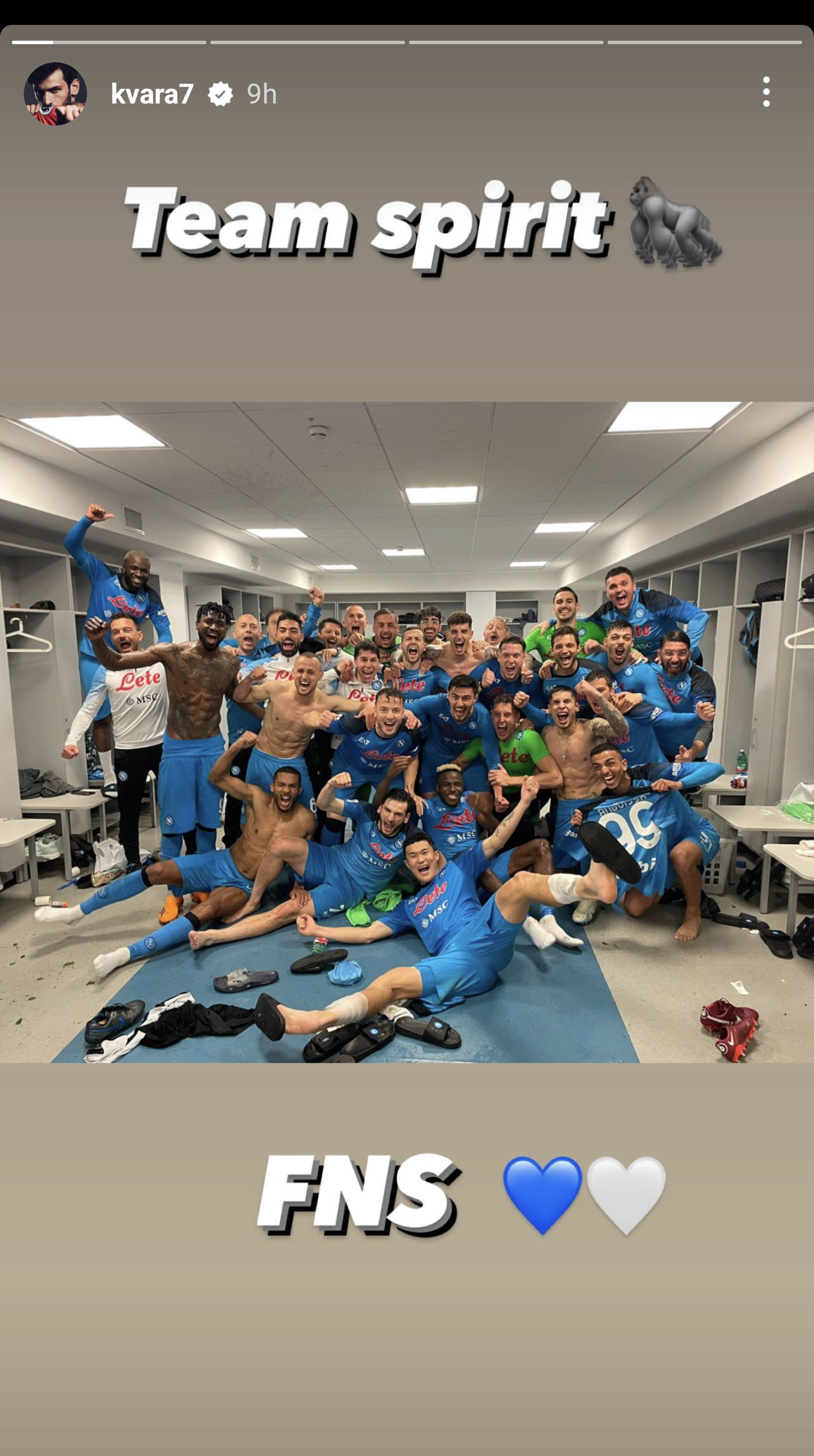 მატჩის დასრულების შემდეგ, კვარამ სოციალურ ქსელში გასახდელიდან გადაღებული ფოტო გამოაქვეყნა სათაურით: "გუნდური სულისკვეთება!".